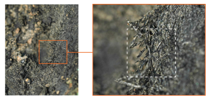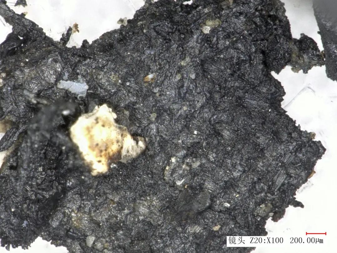 在4号坑的埋藏遗物之上,覆盖了一层灰烬层。考古人员在发掘过程中,观察到有麻线痕迹,用摄像机拍摄下来,放大观察,可以明显看到呈麻花状结构。在现场应急实验室的显微镜下观察,就更为明显了。这是三星堆遗址首次发现麻线。考古人员随即采集了更多的样品,交给文物保护人员进行观察分析。