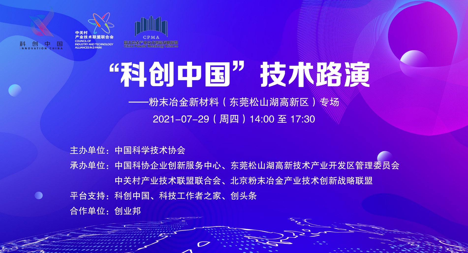 7月29日下午,由中国科学技术协会主办,中国科协企业创新服务中心、东莞松山湖高新技术产业开发区管理委员会、中关村产业技术联盟联合会、北京粉末冶金产业创新联盟联合承办的2021“科创中国”技术路演——粉末冶金新材料(东莞松山湖高新区)专场活动线上举行,通过“科创中国”、科技工作者之家、创头条、创业邦等平台宣传推介。北京粉末冶金产业技术创新战略联盟秘书长韩伟主持本期技术路演。