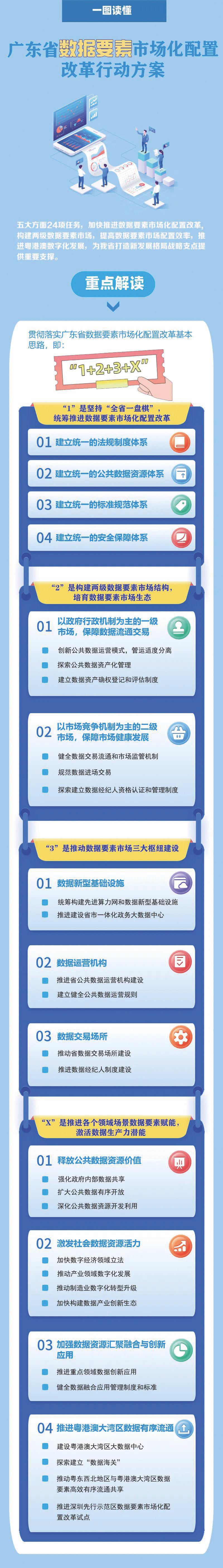 为贯彻落实《中共中央 国务院关于构建更加完善的要素市场化配置体制机制的意见》(中发〔2020〕9号),加快推进数据要素市场化配置改革,提高数据要素市场配置效率,建设“全省一盘棋”数据要素市场体系,根据我省《关于构建更加完善的要素市场化配置体制机制的若干措施》,制定《广东省数据要素市场化配置改革行动方案》(以下简称《行动方案》)并于近日正式印发。《行动方案》从五大方面提出了24条改革任务,明确到2022年底在全国打造“理念先进、制度完备、模式创新、高质安全”的数据要素市场体系和市场化配置改革先行区。