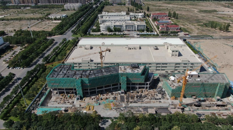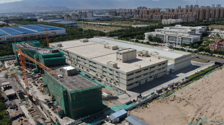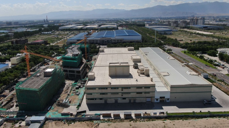 7月28日,高空俯瞰银川经济技术开发区宁夏沃福百瑞枸杞产业股份有限公司新建的枸杞深加工生产车间。