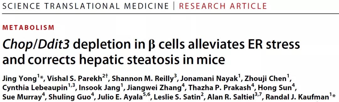 科学转化医学:改善胰岛β细胞的内质网应激反应治疗糖尿病