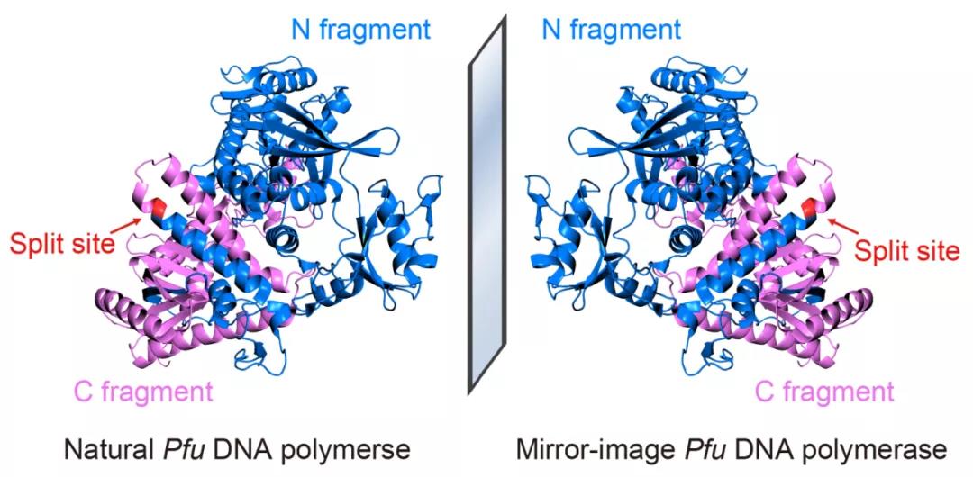 图1:利用分割蛋白质设计辅助合成镜像Pfu DNA聚合酶