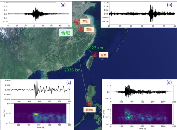 中国科学技术大学合肥微尺度物质科学国家研究中心陈旸、赵东锋团队与地球和空间科学学院王宝善、姚华建团队合作,成功研制出具有自主知识产权的分布式光纤声波/振动传感(DAS)系统,该设备使用现有通讯光缆可进行地震监测、地质灾害预测、地下结构成像、城市地下空间探测等。DAS设备自2021年6月部署在合肥紫蓬山进行连续观测,已成功监测到定远县2.3级地震(6月4日)、宣城2.7级地震(7月22日)、菲律宾6.6级地震(7月24日)、台湾宜兰县5.8级地震(8月5日)等一些区域和全球地震。