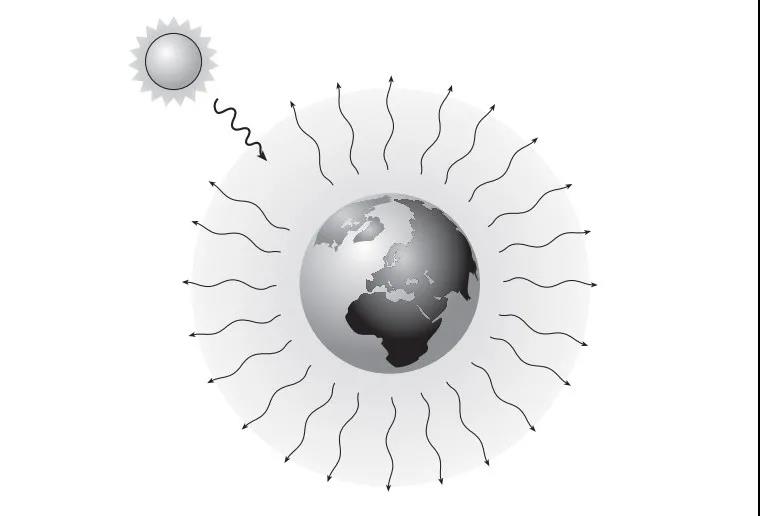 将地球作为单一系统考虑,则其能量收支非常简单。我们以辐射形式从太阳那里得到能量,也通过辐射向太空中丧失同样大小的能量。(并非完全一样。诸如核衰变之类的过程也会使地球升温,并向太空渗漏能量,而能量辐射的速度也并非严格恒定。不过,这仍然是非常好的近似。)但尽管能量大小相同,我们得到的和给出的能量性质却有很大的区别。还记得吧,玻尔兹曼以前的时代,熵被理解为一定量能量有用程度的度量;低熵形式的能量可以用来做有用功,比如驱动发动机或是磨面;但高熵形式的能量就一无是处了。