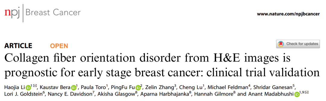 npj Breast Cancer:AI通过胶原蛋白排序预测乳腺癌是否会复发
