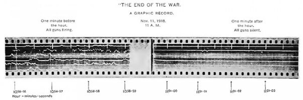 《一战的结束》中写道,这是美国前线炮火活动的最后一次记录,图像是从美国的声波测距仪发出的。它写道,“声音测距是确定敌人火炮位置和口径的重要手段。”