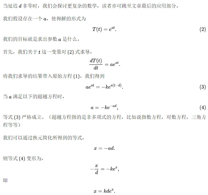 其实这种现象可以用一个方程来描述,而且这个方程可不是只能用来分析洗澡水温度——从气候变化到新冠疫情的扩散,它有着广泛的应用。其原因就在于,世界上许多变化的过程都受到延迟的影响。在具体分析之前,我们先来看看这个方程的形式。