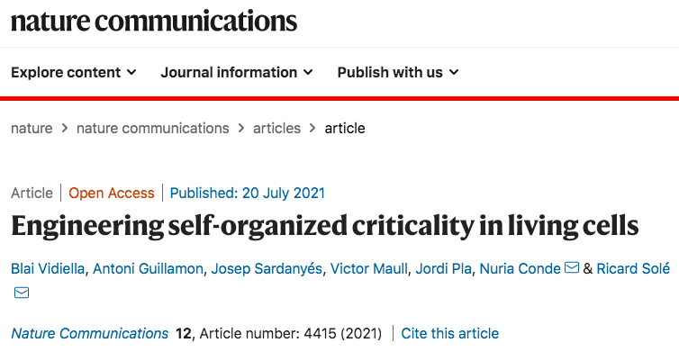 临界态在复杂系统中广泛存在,其特点是小改变能引起雪崩式的大变化。Nature Communications 7 月的论文“在活细胞中设计自组织临界态”,首次通过合成生物学,在大肠杆菌中使用两个基因相互调控,再现了临界状态。