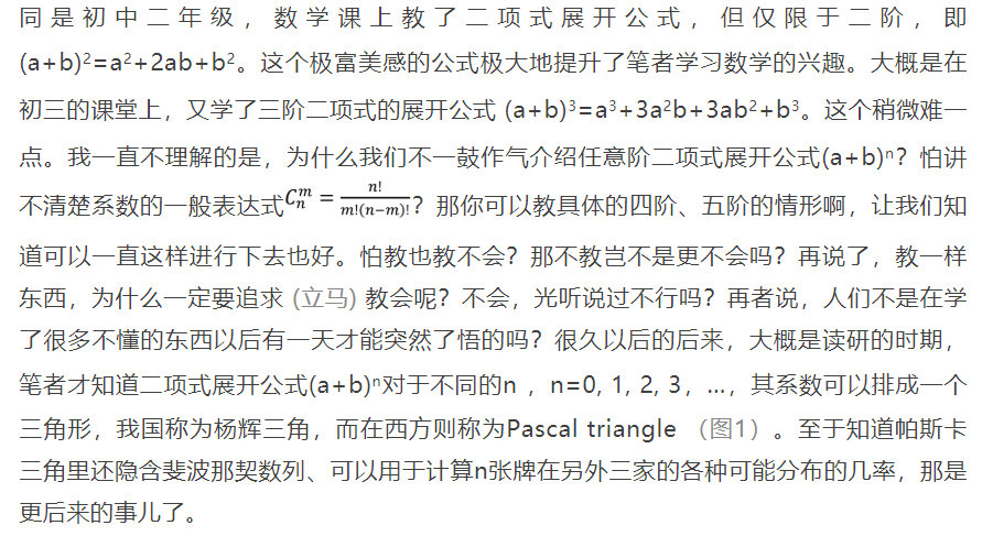 关于帕斯卡三角里的数学,还有很多不为笔者所知晓的内容。我有种感觉,如果就着帕斯卡三角深入研究,应还有新的发现。