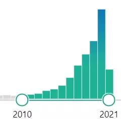 2010-2021年类器官相关文章数量柱形图 (Pubmed)