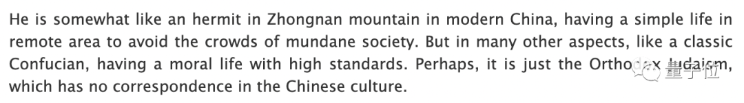 他有点像中国终南山的隐士,在偏远地区过着简朴的生活,避开世俗的人群。
