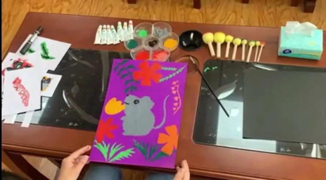 在系列微课中,教师们用不同的材料、不同的技法、不同的绘画形式绘制了形态各异的十二生肖,让孩子们足不出户就能跟着学画画。在丰富学生假期生活的同时,使学生们被十二生肖的不同绘制形式所吸引,用彩笔和画纸展现自己笔下的十二生肖。