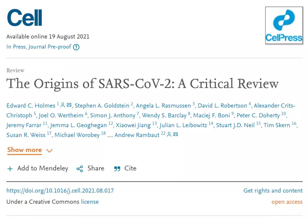 近日,Cell杂志发表了一篇关于新冠病毒起源的批判性综述(critical review),通讯作者为澳大利亚悉尼大学玛丽巴希尔传染病和生物安全研究所的病毒学家、进化生物学家Edward Holmes与英国爱丁堡大学进化生物学家Andrew Rambaut,由英、美、澳、加、中国、新西兰等多国科学家共同撰写。这篇综述结合WHO的报告和82篇研究论文的众多科学数据,系统回顾了当前致力于澄清新冠病毒起源的科学证据。今天的文章将为大家详细解读。
