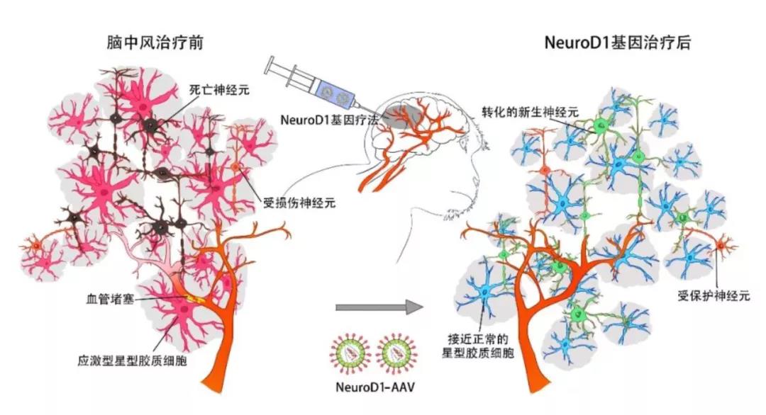 我们现在的神经转分化技术,能够把损伤以后分裂型的胶质细胞摇身一变,变成了不可以分裂的神经元,所以从理论上降低了这种分裂型胶质细胞的成瘤风险。今年春天我们刚发表了一篇文章,当把NeuroD1直接表达到脑肿瘤细胞以后,脑肿瘤细胞也被转化成了神经元,这就提供有力的证据表明我们的NeuroD1是不会成瘤的,因为即使是脑肿瘤细胞,都能被NeuroD1变成神经元。