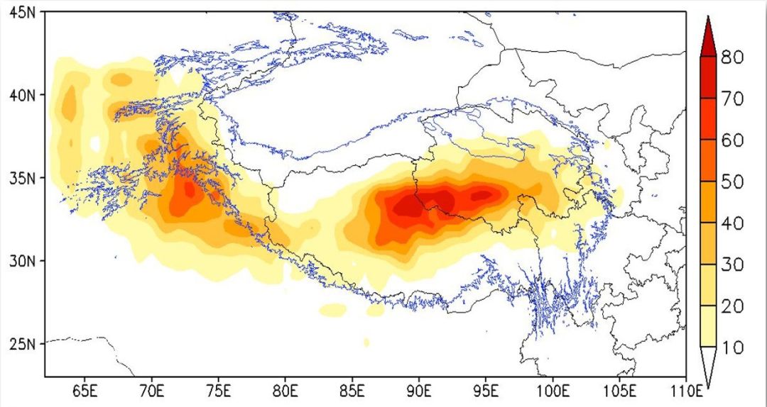 ▼风云气象卫星监测青藏高原低涡分布图1989-2016年
