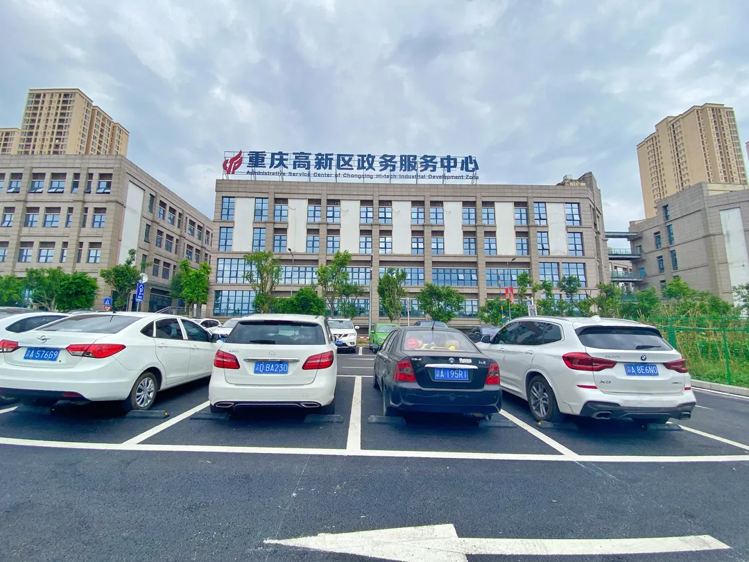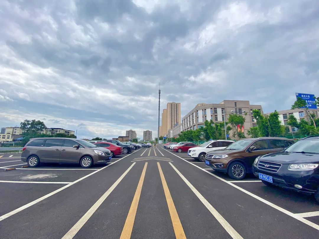 ▲新修建的政务中心停车场干净整洁。成雪 摄