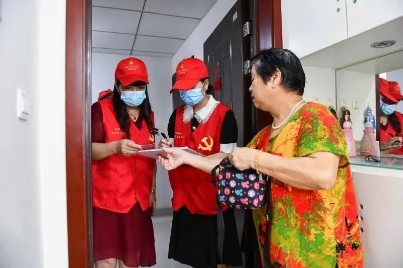 ▲树人思贤小学校长邓瑜率多名党员教师挨家挨户扫楼,询问疫苗接种情况。