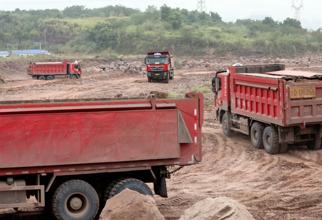近100辆运输车和挖掘机等机械设备