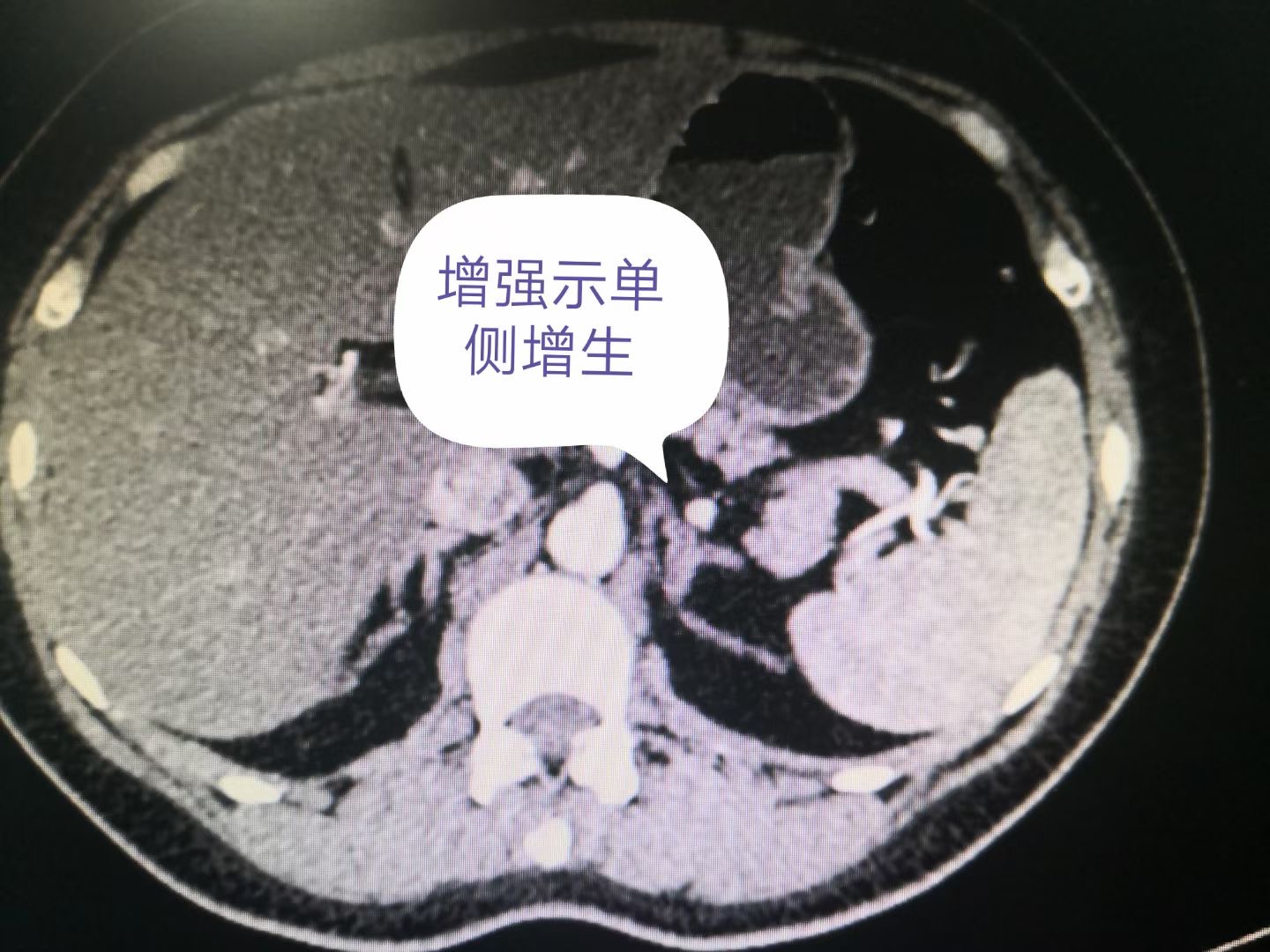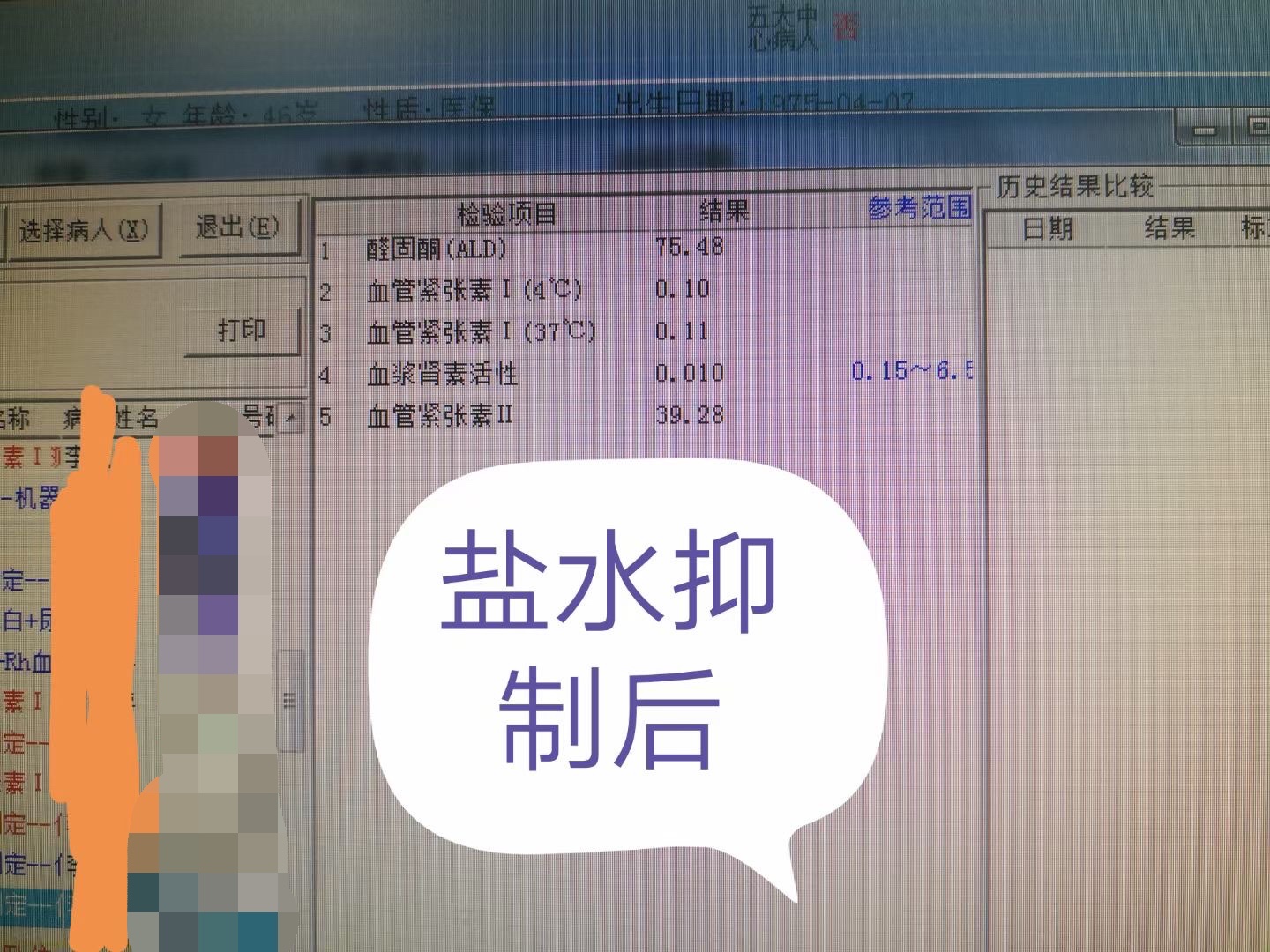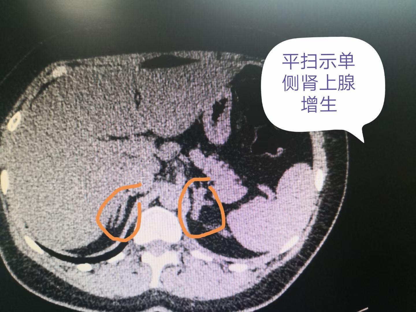 湘潭市第一人民医院内分泌科一位46岁女性患者,发现血压高10年,没有低钾病史,二联降压血压勉强达标,因发病年龄轻(36岁)行ARR筛查,考虑原醛所致的继发性高血压,盐水抑制试验不能排除,卡托普利实验不能抑制,结合CT结果(报告为“单侧肾上腺增生“),确诊为“原发性醛固酮增多症”(原醛)。