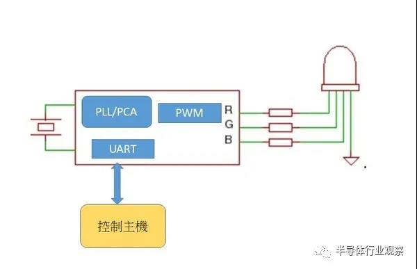 时钟是MCU的心脏,内部RC时钟因温度所造成的频率偏差会造成许多问题,首先PWM讯号也是经由内部主频产生,当温度造成的频飘影响PWM的输出,会间接造成LED颜色的微幅改变。更严重的是,有很多灯控应用是透过非同步传输的UART与控制主机进行通讯,并不像I2C/SPI有时钟(clock)讯号同步控制,UART只要频率飘移超过4%,就会造成整个通讯异常而导致LED画面黑屏错误。