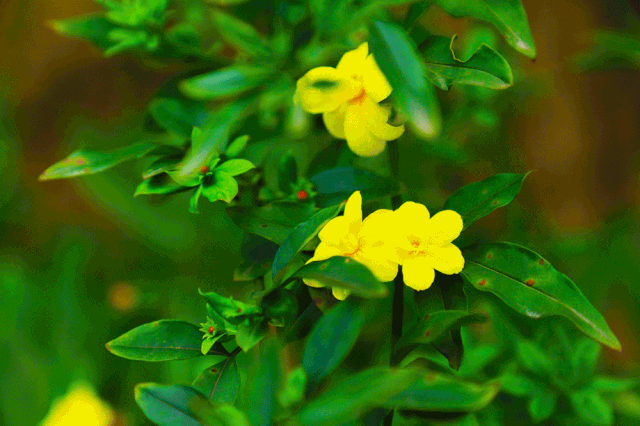 灿烂的迎春花形成一条黄色花带