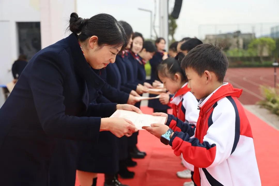 育英永佳小学校长向莉莉也在开学典礼送上祝福,希望每一位同学培养“志气”“勇气”“力气”、锻炼“专注力”“思考力”“抗挫力”,开启新的征程!