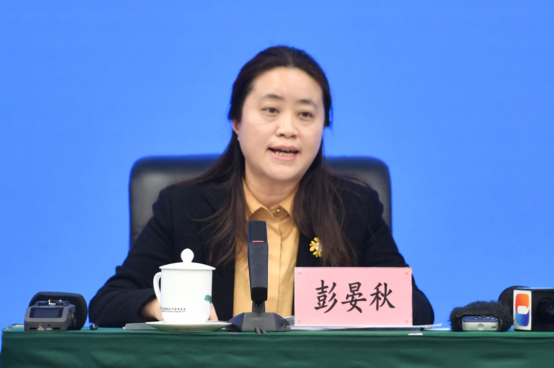 ▲重庆高新区财政局一级调研员彭晏秋答记者问
