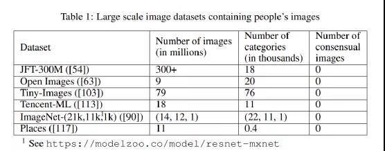 开源的open Images V4-5-6包含一个三百多万图像的子集,涵盖2万个类别(还拥有一个扩展数据集,包含五十万众包图像,涵盖6000多个类别)。但被发现包含有11张未经双方同意的儿童图片,而这些图片是从flickr上下载的。