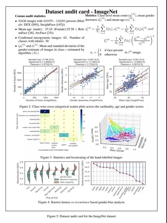 在ImageNet数据集中,2832个人物类别中有1593个有潜在的攻击性标签,并计划从ImageNet中删除所有这些标签。两位作者强烈主张对Tiny Images数据集中的攻击性名词类以及ImageNet-ILSVRC-2012数据集中属于可验证色情、非自愿场景拍摄、海滩窥淫癖和暴露生殖器类别的图像采取类似的行为。