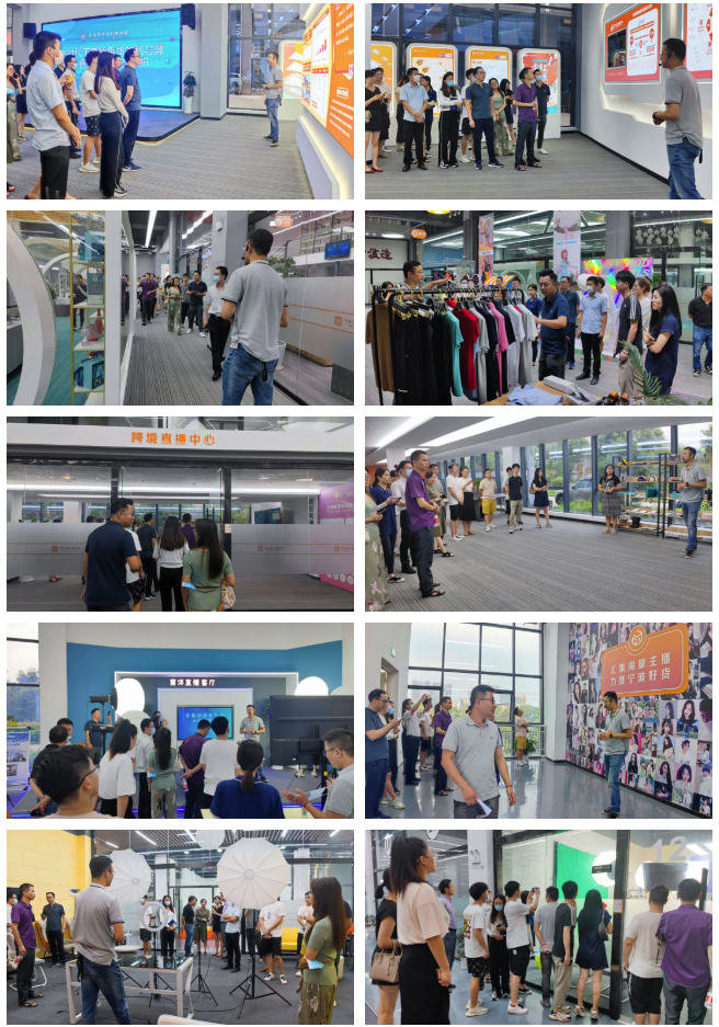 活动伊始,众人在宁波(前洋)直播中心负责人于明的带领下参观了直播中心的“选品中心、路演大厅、精品馆、直播客厅、直播间”等配套设施,大致了解了企业直播所需的软硬件配备。