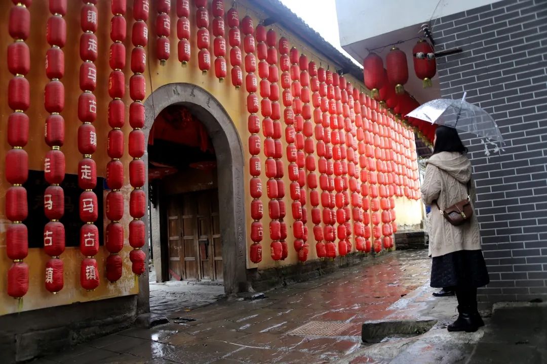 ▲古镇处处挂满大红灯笼,彰显古镇的繁荣。雷键 摄