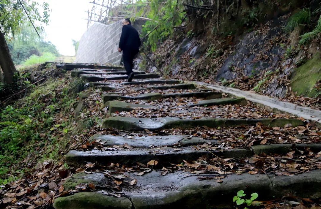 ▲下方古路石板被岁月打磨得光滑圆润,与上方修缮后的石板形成鲜明的对比。雷键 摄