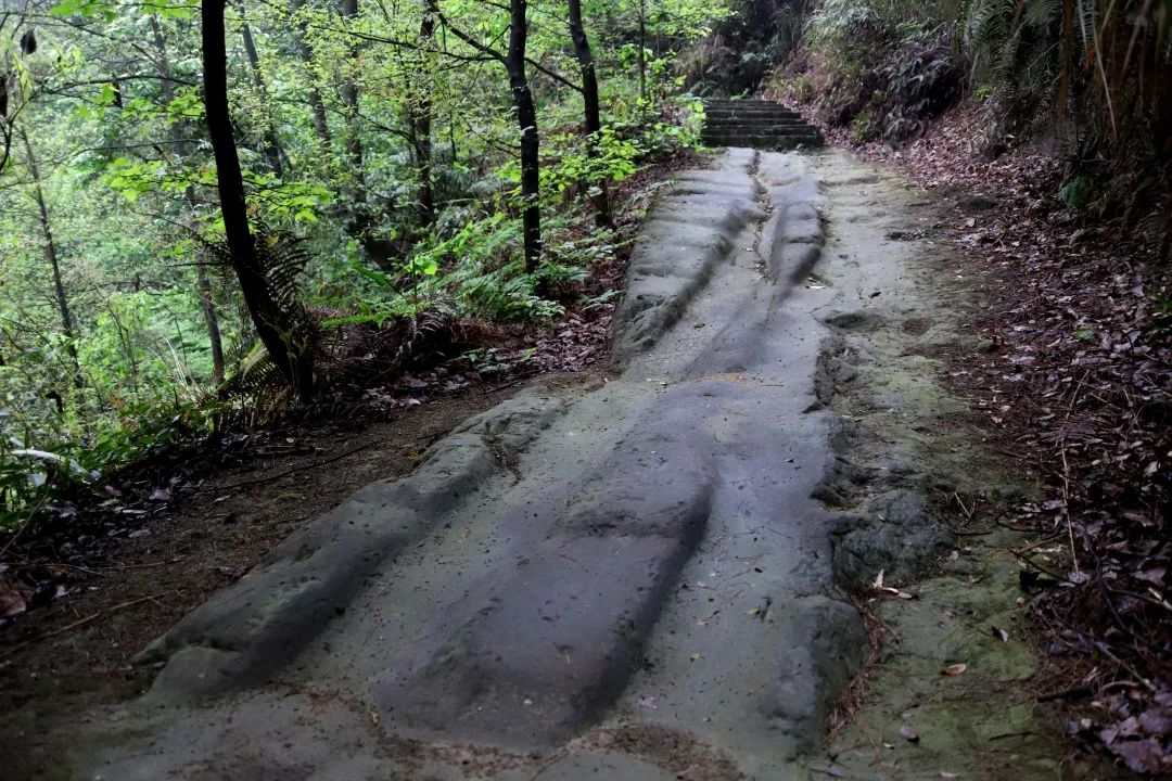 ▲保存完好的古驿道青石板上深深的槽印和马帮蹄痕。雷键 摄