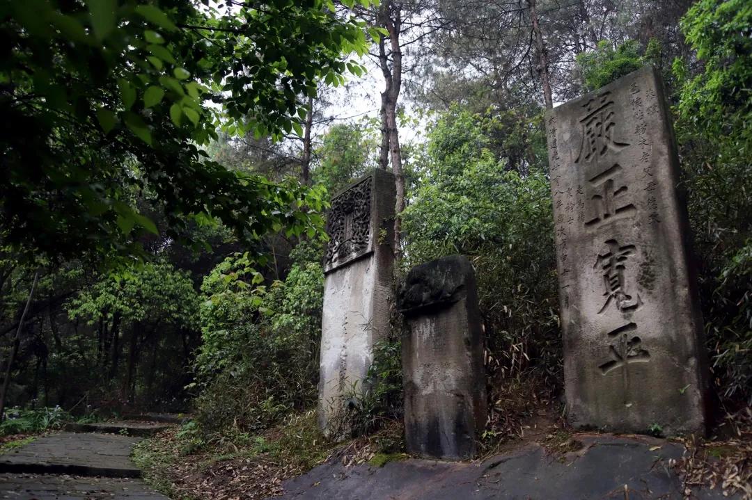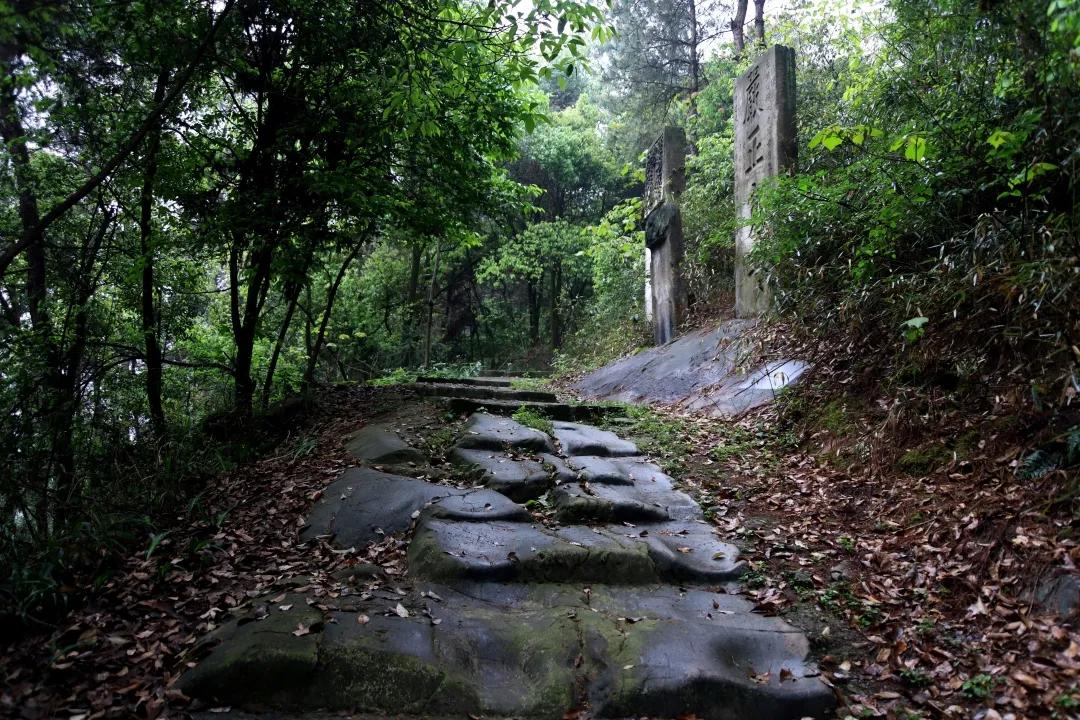 ▲古驿道边矗立着三块横向排列的石碑,当地人叫三道碑,始建于清道光年间,三块碑均坐西向东保存完好。雷键 摄