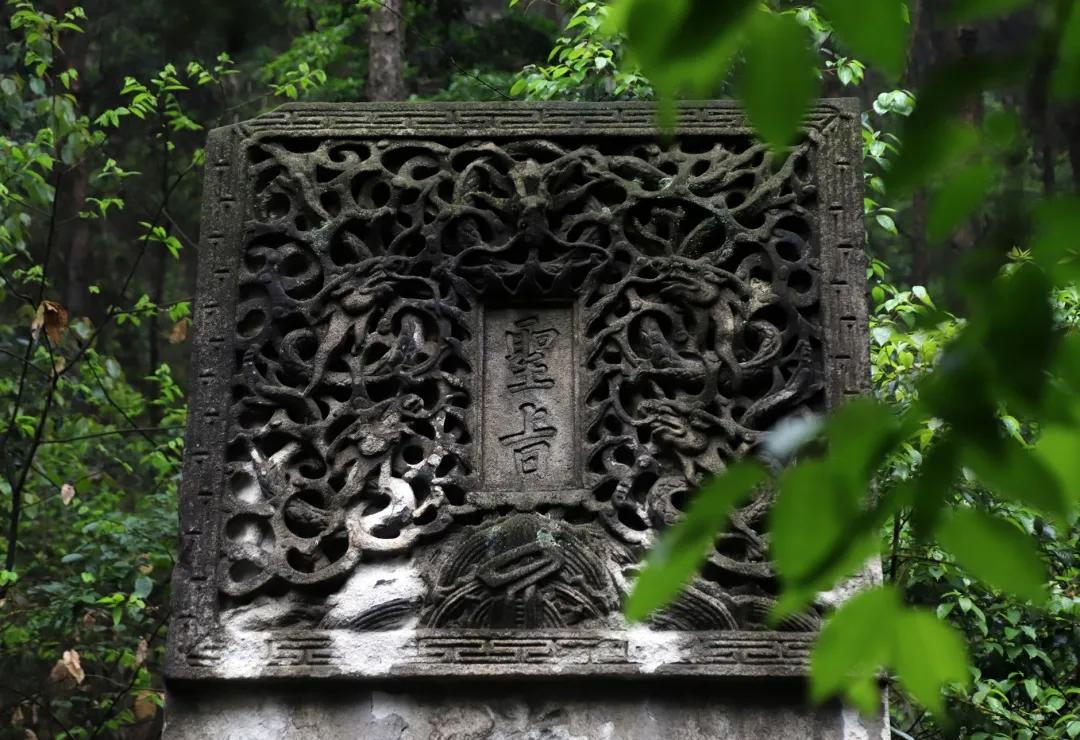 ▲石碑顶端清晰的“圣旨”二字体现了其历史文化,上面雕刻着栩栩如生的龙纹。雷键 摄