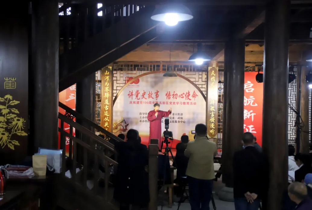 百年征程波澜壮阔,百年初心历久弥坚。作为曲艺之乡的重庆高新区走马镇为庆祝中国共产党成立100周年,深入推进党史学习教育开展,引导广大干部群众学史明理、学史增信、学史崇德、学史力行,在走马古镇民情茶馆展开了一场别开生面的故事会。