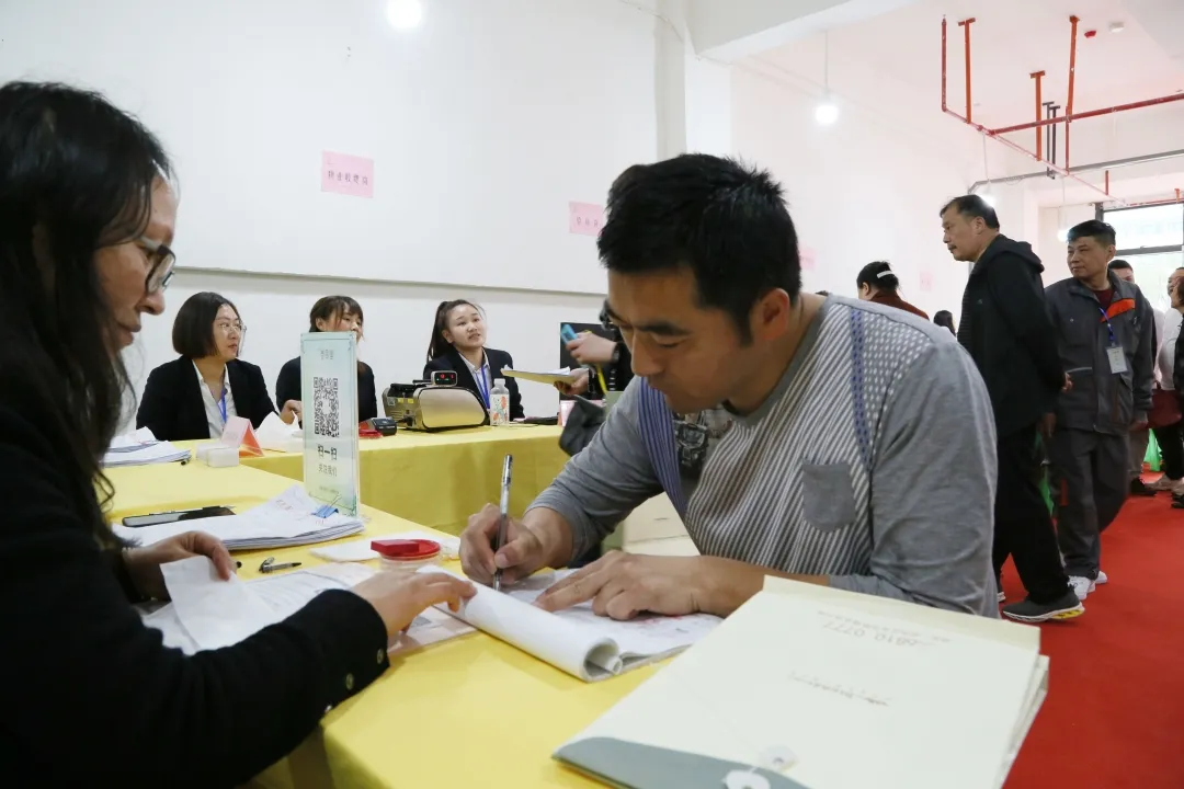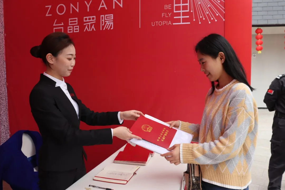 ▲购房者在春风里项目现场办理不动产权证领取手续
