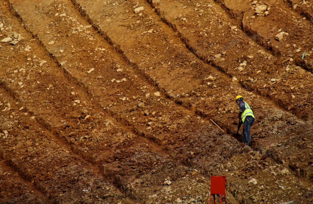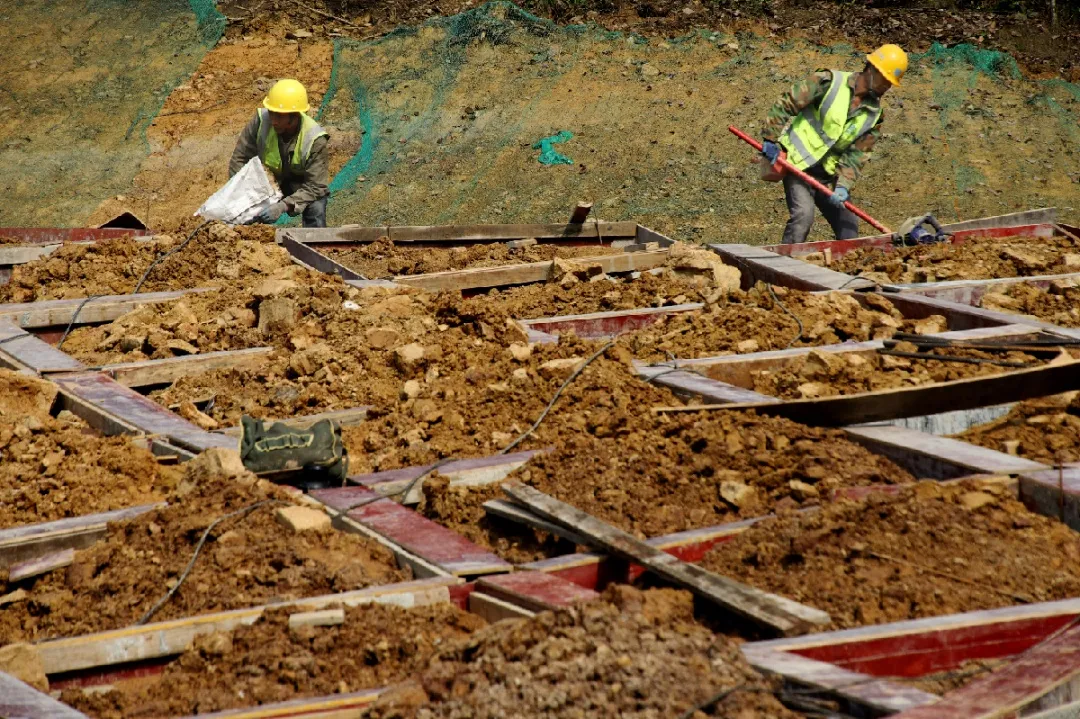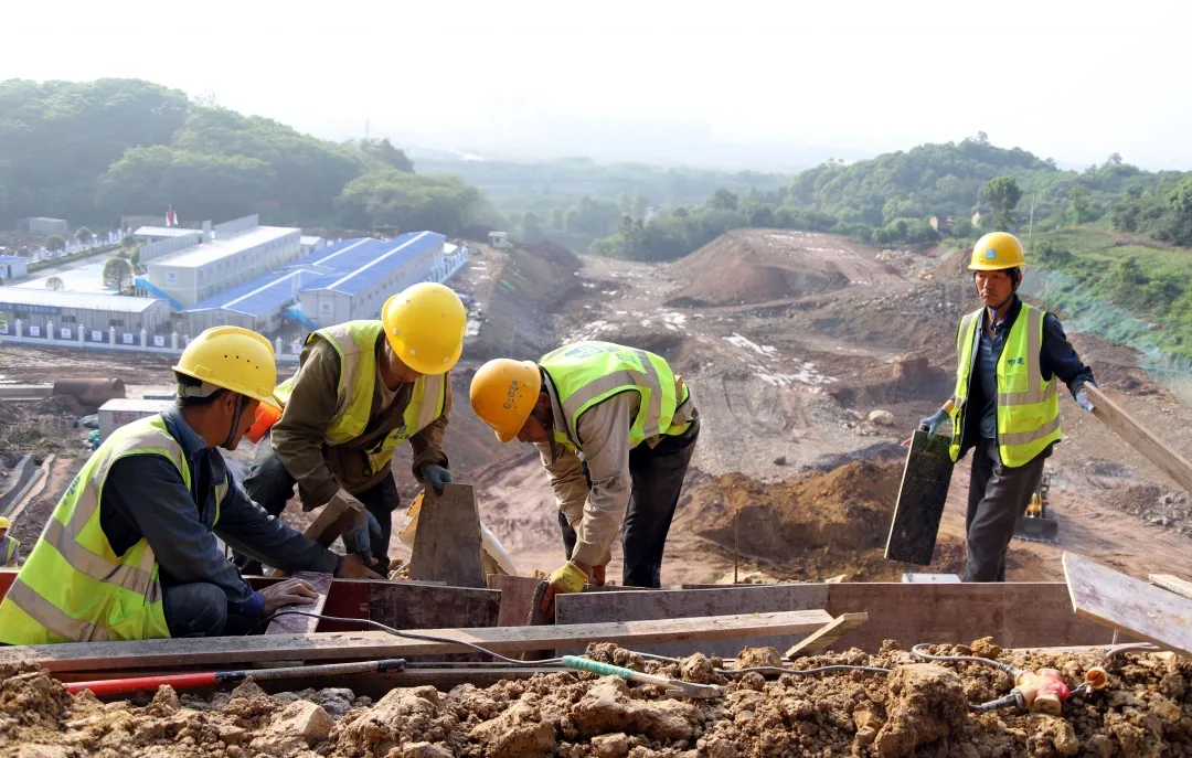 ▲科学城隧道施工现场工人挥汗如雨、分工明确。雷键 摄