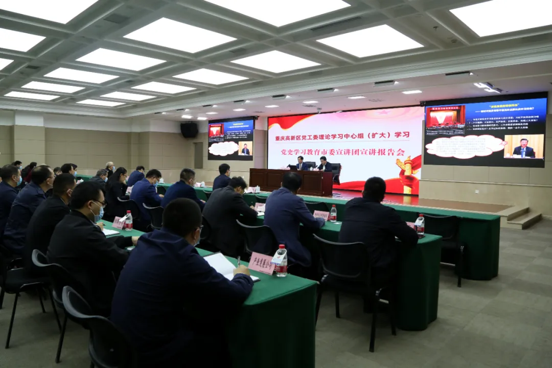 ▲重庆高新区开展党工委理论学习中心组(扩大)学习暨党史学习教育市委宣讲团宣讲报告会 成雪 摄