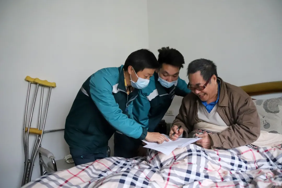 ▲帮办代办员给76岁老人刘嘉华核对信息和审核资料。雷键 摄
