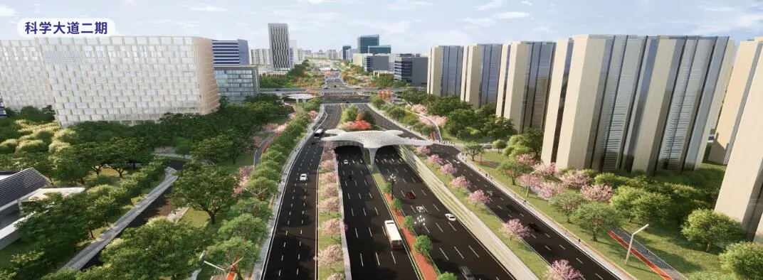科学大道是科学城核心区建设的标志性工程。二期项目总投资约98亿元,分为南北两段,南段为巴福立交至农马立交段,长约6km,北段为中柱立交至龙井湾立交段,长约6.7km,打造集聚形象展示、绿色共享、智慧科学为一体的综合性大道。