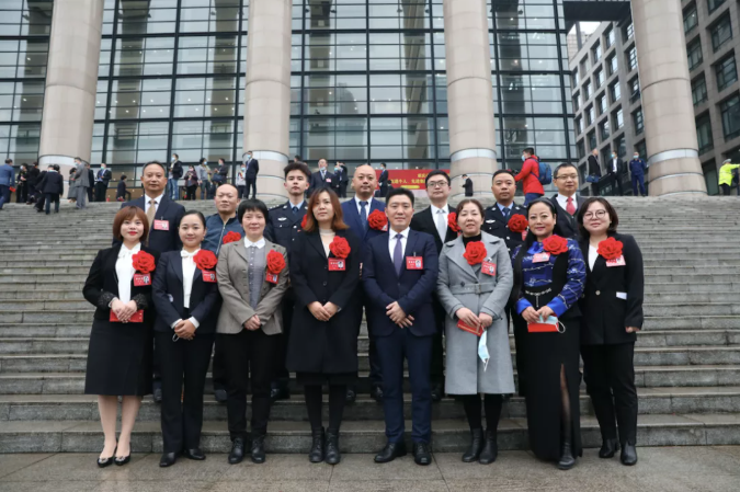 ▲吴亚(前排左一)参加全市抗击新冠肺炎疫情表彰大会