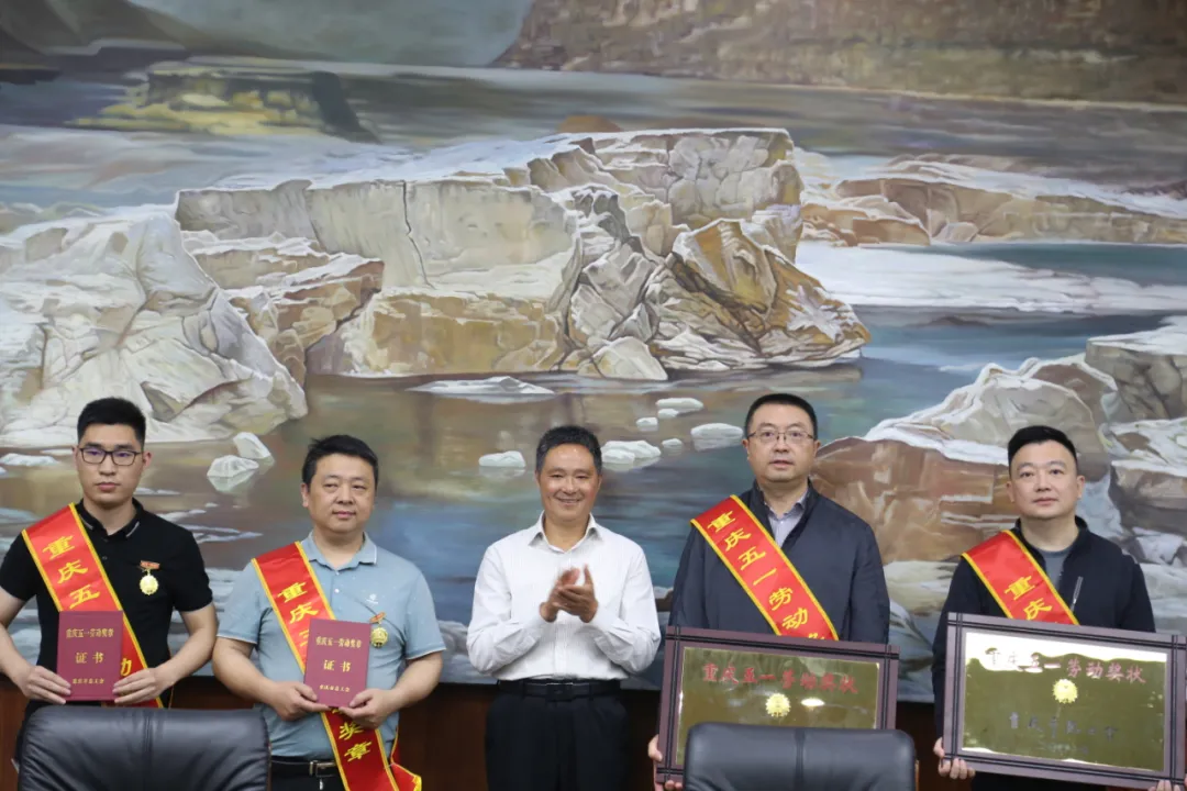 ▲重庆五一劳动奖章(左一左二)及重庆五一劳动奖状(右一右二)获奖单位。肖腾 摄