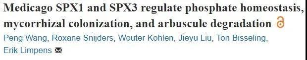 近日,荷兰瓦赫宁根大学EHM Limpens团队The Plant Cell发表了题为Medicago SPX1 and SPX3 regulate phosphate homeostasis, mycorrhizal colonization, and arbuscule degradation的研究论文,首次发现两个磷信号感知相关蛋白SPX1和SPX3通过控制磷酸盐动态平衡和降解丛枝调控菌根共生的新机制。