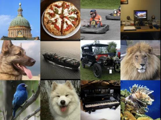 图 3:256x256 级联类条件 ImageNet 模型中生成的部分图像
