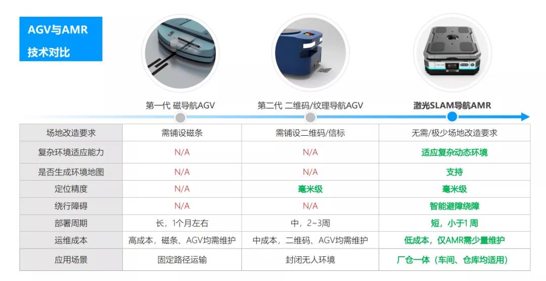AGV与AMR技术对比(图源:斯坦德机器人)