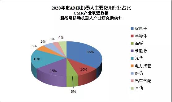 2020年AMR机器人主要应用行业占比(图源:新战略移动机器人产业研究所)