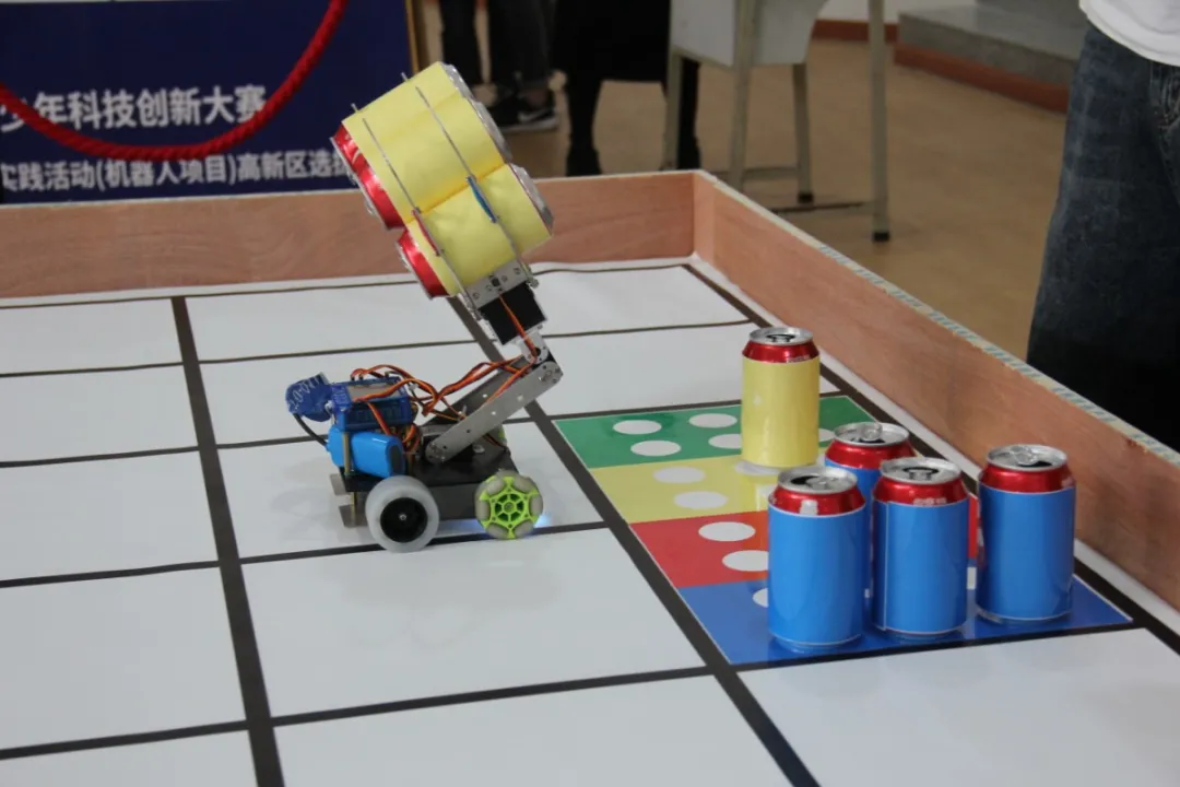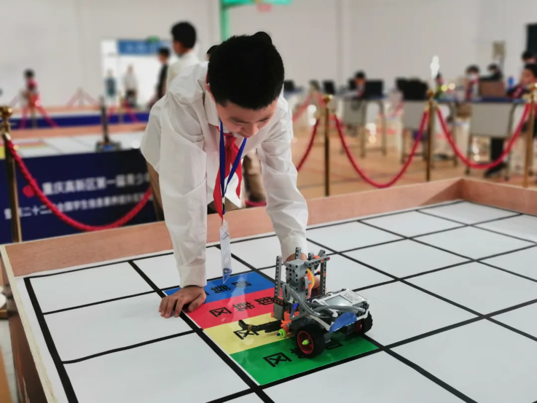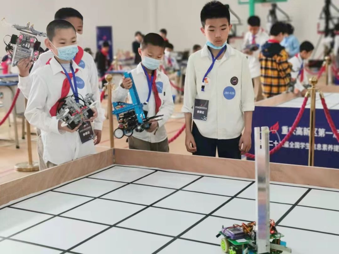▲机器人定点起降比赛,裁判也专注。余春兰 摄
