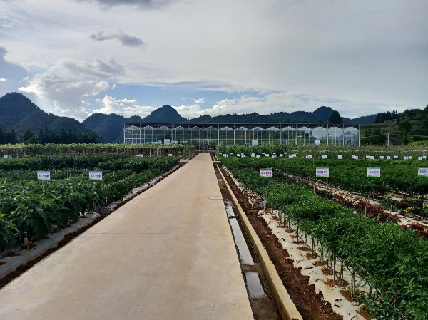 该基地占地面积50亩,现已建成9块标准化种植试验田、1000平方米玻璃种苗繁育温室及一系列配套设施系统。引入东部先进的农业基地管理理念和运作模式开展运营,现已示范种植茄子、辣椒、冬瓜等蔬菜品种243个,其中来自广州的品种有75个。