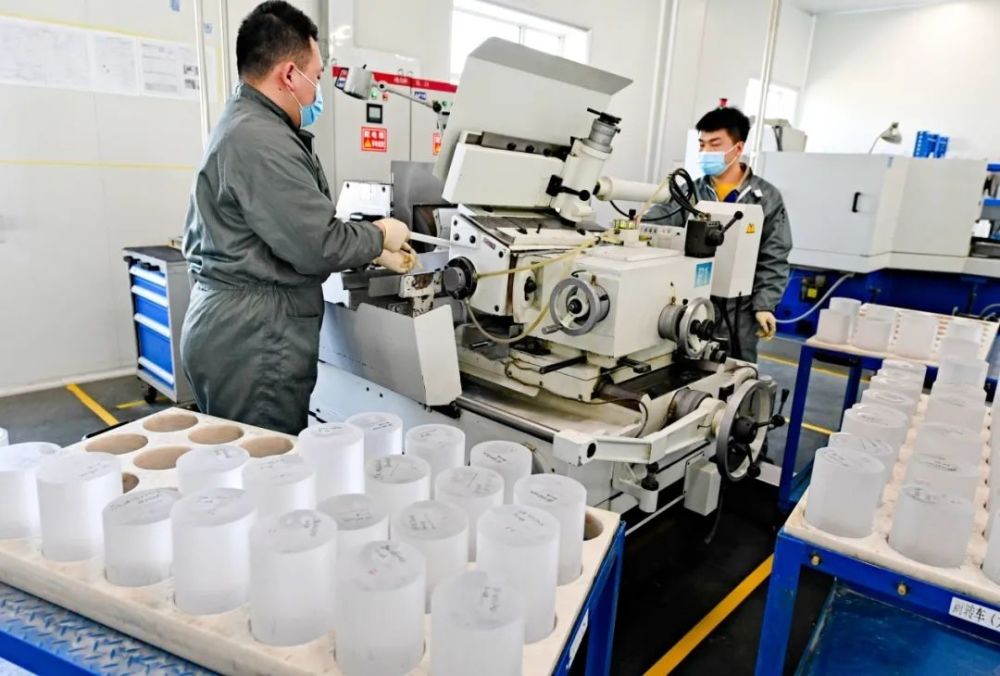 银川经开区天通银厦新材料有限公司工人正在加工蓝宝石晶棒